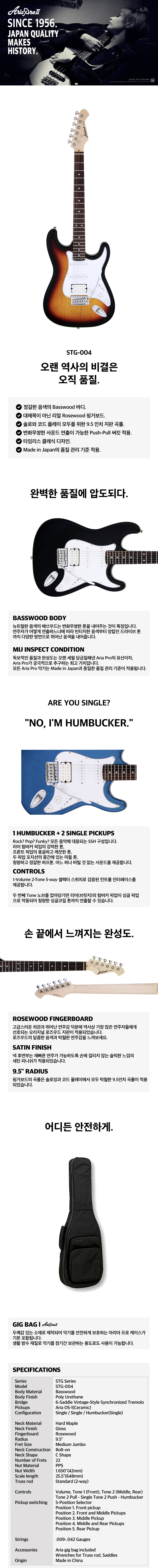 Aria Pro II - STG-004 아리아 프로 일렉기타 3-Tone Sunburst