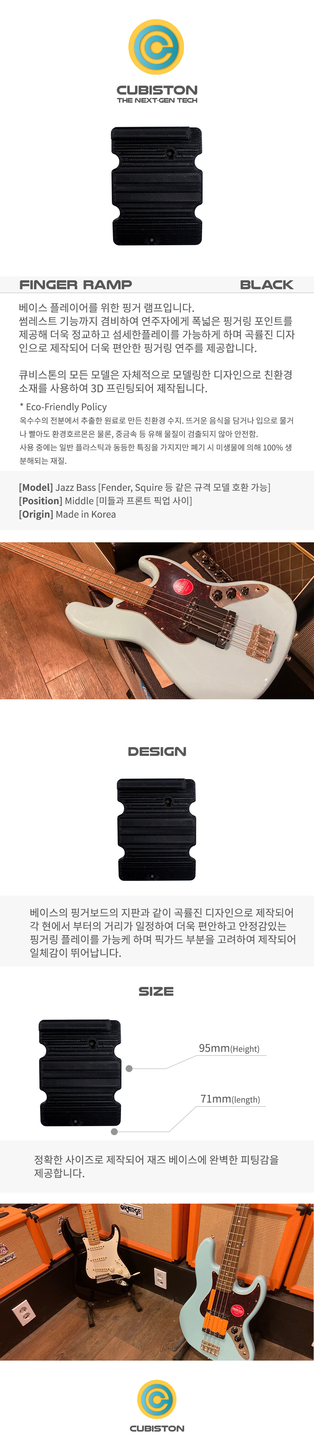 Cubiston 베이스 핑거 램프 Middle Black