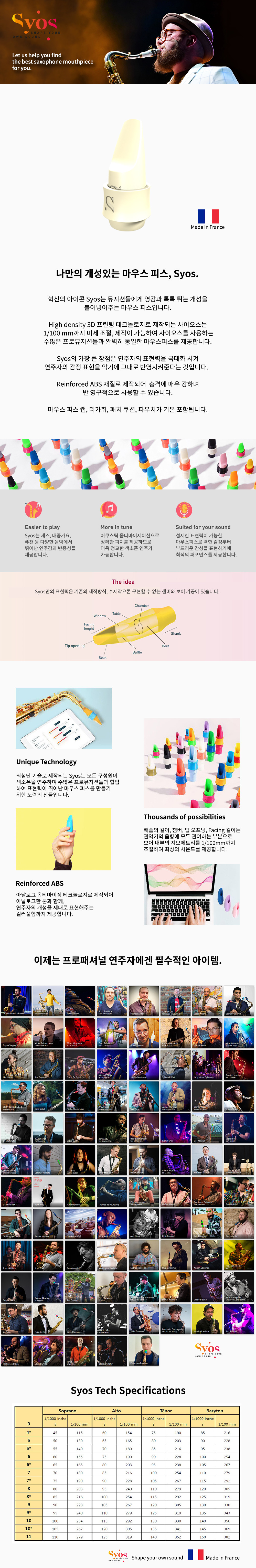 Syos 소프라노 색소폰 마우스피스 Model 3 / Ivory White